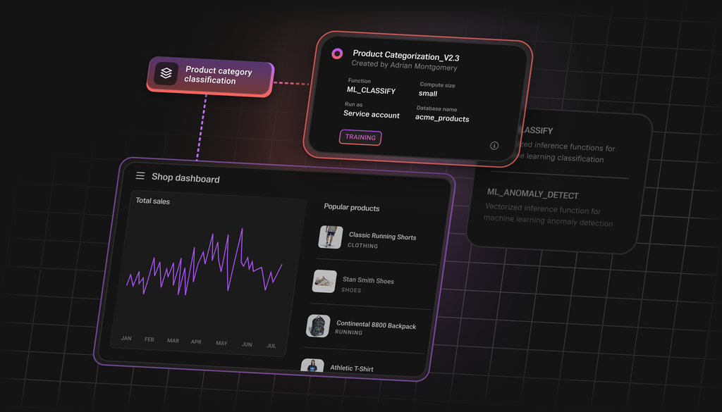 ML Functions enable running custom machine learning models directly in SingleStore using SQL. Train, deploy, and execute predictive models on live data without complex MLOps pipelines or data movement.