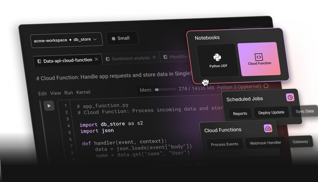 Extend SQL with custom Python logic that executes directly within the SingleStore ecosystem, bringing computation to your data, with Python User-Defined Functions (UDFs).