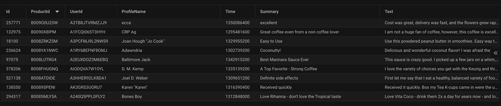 Amazon Product Reviews dataset from Kaggle. For this blog, we have used a smaller structure of the complete dataset for faster embeddings.