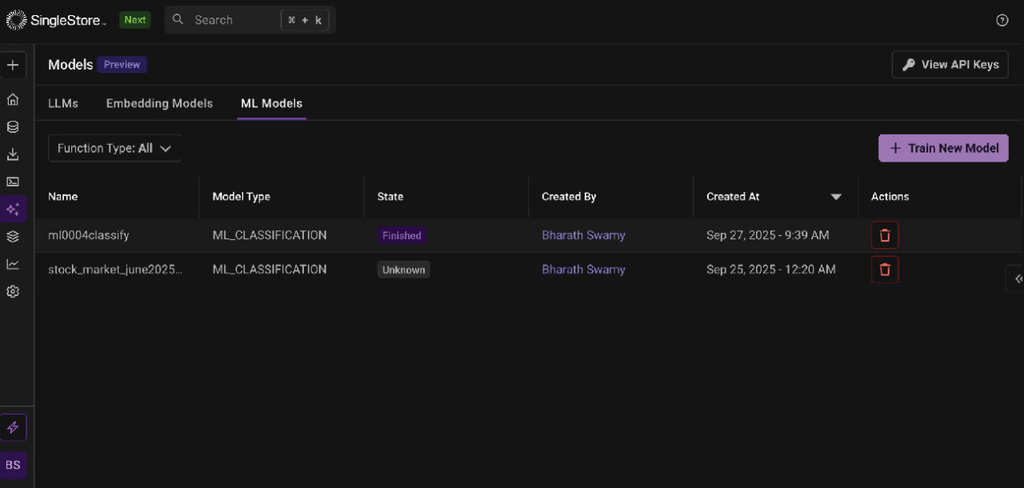 The core philosophy remains unchanged: Bring the models to the data, not the data to the models. But now, instead of just accessing pre-trained models, you can create your own predictive engines that understand the nuances of your specific domain, all while maintaining the blazing-fast performance and real-time capabilities that SingleStore is known for.