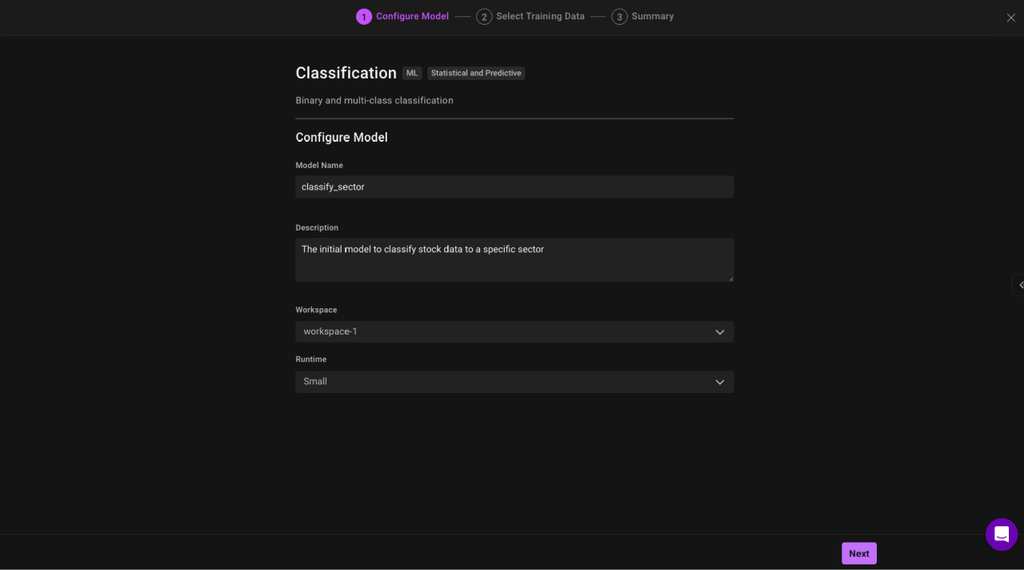 - Pick your model type: Classification, anomaly detection, or forecasting ( More ML operation types will be added in the future )