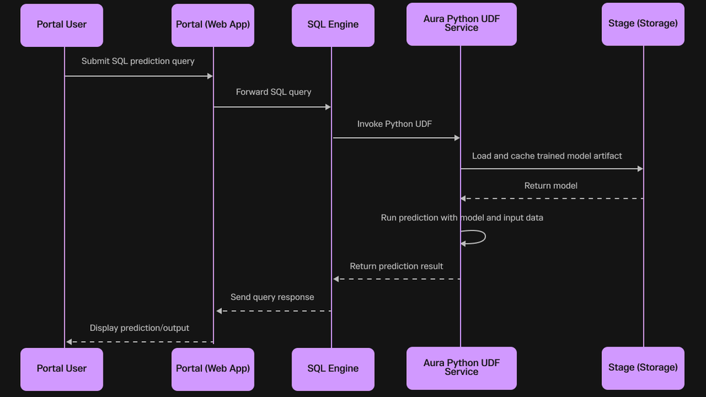 1SELECT customer_id, aura.ML_CLASSIFY('lead_conversion_model', lead_source, website_visits) AS conversion_prediction2FROM new_leads;