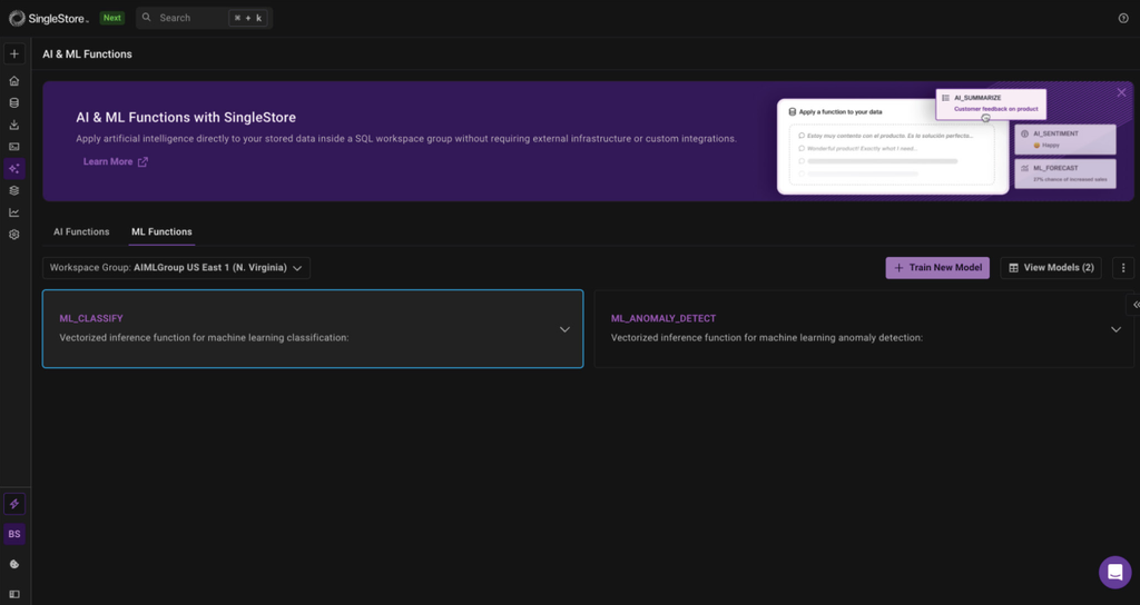 ML Functions represent just the beginning of SingleStore's vision for democratizing machine learning. Looking ahead, our roadmap includes: