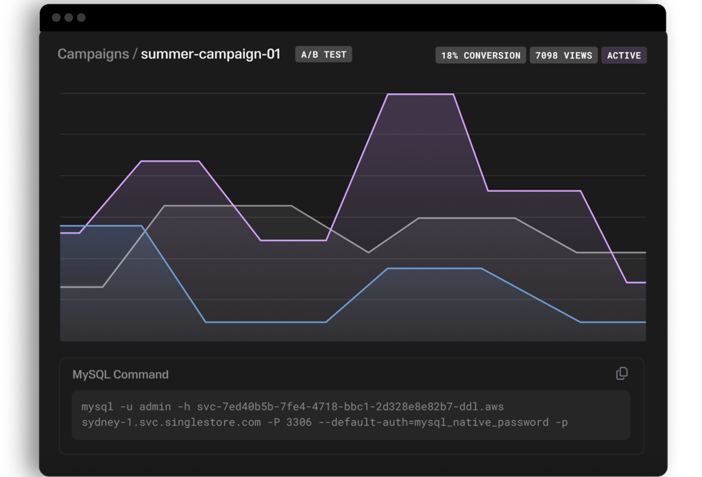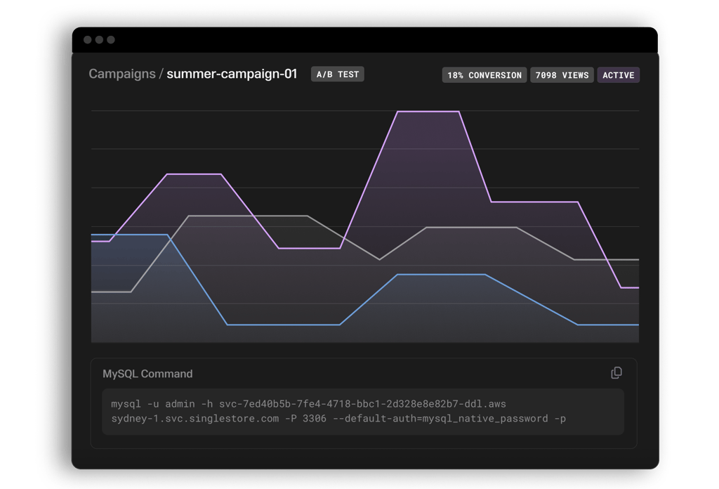 SingleStore handles thousands of simultaneous queries across tenants, dashboards, APIs, and AI services - ensuring reliable performance during peak campaign launches and seasonal spikes.